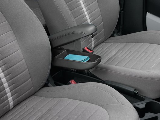 Зручна опора та зручне зберігання в одному пристої. Цей регульований шарнірний підлокітник, встановлений на сидінні водія, має зручне відділення для зберігання дрібних речей.