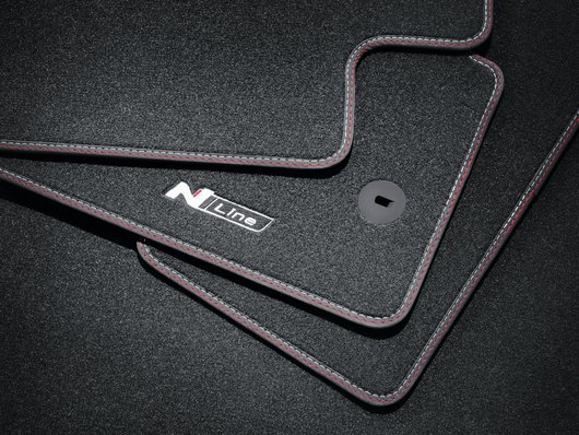 Додайте гарне, але міцне покриття для підлоги вашого автомобіля з високоякісного велюру. Зроблені на замовлення килимки мають логотип N Line у передньому ряду та фіксуються за допомогою точок кріплення та протиковзкої підкладки. Набір з 4 шт.