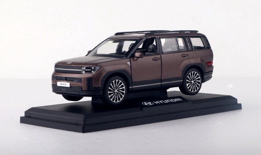 Якісна та оригінальна модель автомобіля Hyundai Santa Fe виконана в масштабі 1:38. Передні двері авто відчиняються. Модель виконана з металу та встановлена на пластикову підставку з логотипом Hyundai. Не є іграшкою для дітей.